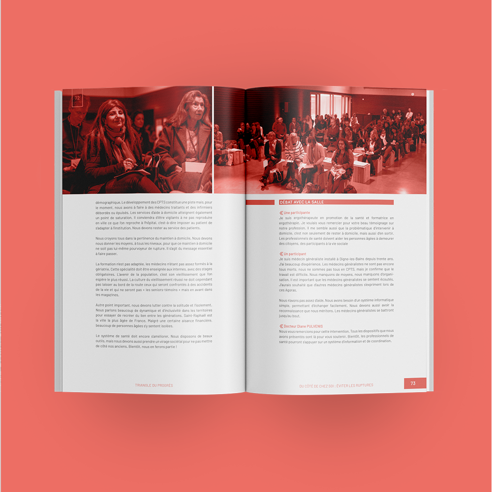 Le concept graphique s’appuie sur cette idée de rencontre et de rassemblement, tout en respectant l’identité visuelle de l’ARS (couleurs, arc graphique). Un travail typographique singulier a été développé, où les lettres se rejoignent et se complètent, créant un ensemble dynamique, lisible et cohérent.